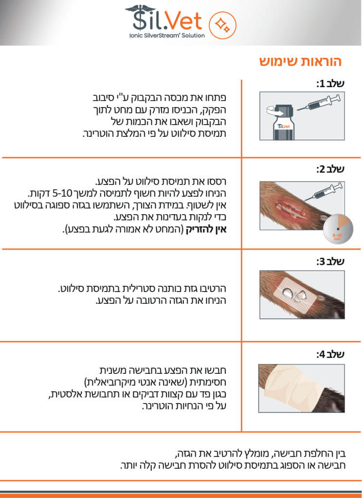 הערה: הפצע ניתן לניקוי אם סילווט יושם בעזרת מחט