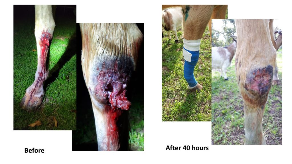 Pola horse was injured and suffered a deep wound on the border of the carpus joint. Open bleeding wound…the situation was critical. But Silvet did a miracle, just after 40 hours. Unbelievable!